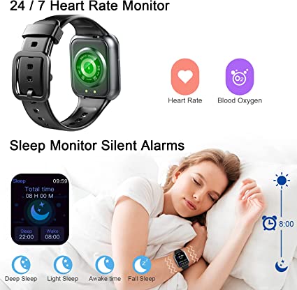 • New Multifunction Smart Watch: Smartwatch includes more practical functions, Fitness Tracker (Pedometer/Calories/Distance), Heart Rate Monitor, Sleep Monitor, 25 Sports Modes, IP68 Waterproof, Blood Oxygen Monitor, Call Notifications, SMS and APP Messages (WhatsAPP, Facebook…), Music & Camera Control, 6 levels of Brightness Adjustment, Weather Display, Sedentary & Drink Water Reminder, GPS tracking, Gmail, Stopwatch, Timer, Calculator, Alarm Clock, Do Not Disturb/Power-saving Mode, Find watch.